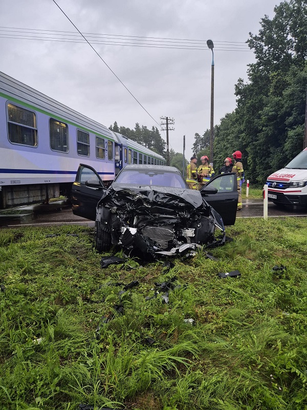 BMW wjechało w rozpędzony pociąg. Kierowca i pasażerka cudem uniknęli obrażeń
