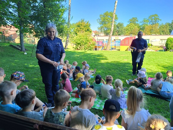 Policjanci z Lęborka i Łeby spotkali się z dziećmi i rozmawiali o bezpieczeństwie podczas wypoczynku nad wodą i o bezpiecznym zachowaniu na drodze.