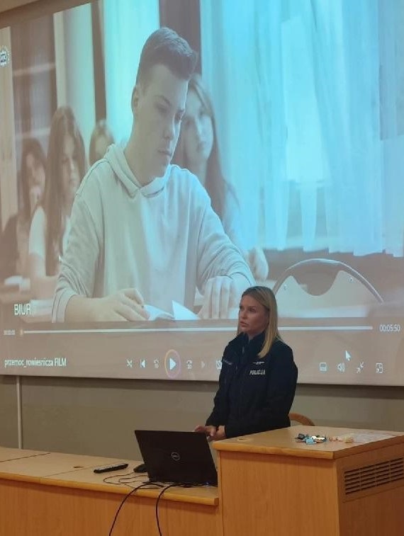 W ramach ogólnokrajowej inicjatywy Ministerstwa Edukacji Narodowej „Tydzień o Przeciwdziałaniu Przemocy Rówieśniczej” lęborska policjantka, zajmująca się profilaktyką społeczną, prowadzi w szkołach podstawowych i ponadpodstawowych spotkania informacyjno – edukacyjne, mające na celu uwrażliwienie uczniów na krzywdę drugiego człowieka. Funkcjonariuszka przypomina znaczenie ważnych i niestety często zapominanych w dzisiejszym świecie słów jak tolerancja i szacunek do innej osoby, mówi czym jest przemoc rówieśnicza i jakie konsekwencje się z nią wiążą, poruszając tym samym kwestię odpowiedzialności prawnej nieletnich. W spotkaniach wykorzystuje spot profilaktyczny, traktujący o przemocy, jakiej doświadcza uczeń ze strony swoich rówieśników. Przedmiotowy spot jest podstawą do żywiołowej dyskusji na temat form przemocy i sposobów radzenia sobie z traumatycznymi przeżyciami. Na zakończenie każdego każdego spotkania policjantka przekazuje swoim słuchaczom adresy i telefony instytucji udzielających wsparcia i pomocy w sytuacjach kryzysowych.