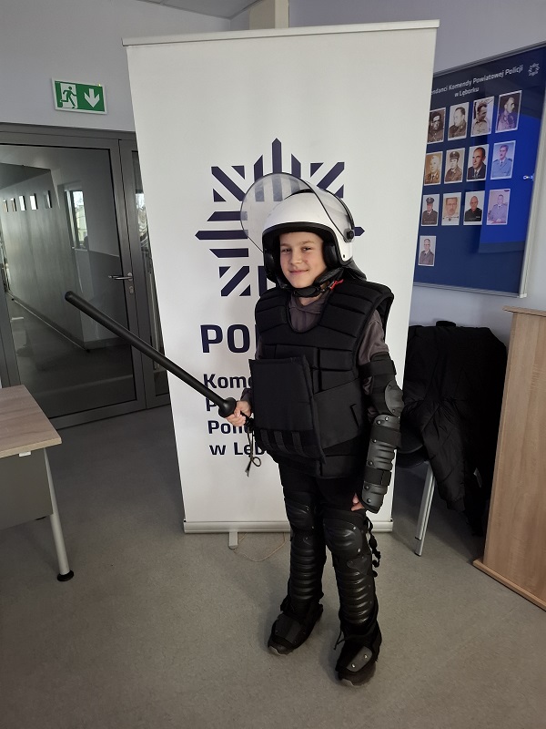W piątek 21 listopada, w ramach Światowego Tygodnia Przedsiębiorczości, uczniowie szóstej klasy SP nr 1 w Lęborku, odwiedzili lęborskich mundurowych w miejscu ich pracy, by poznać specyfikę zawodu policjanta. W pierwszej kolejności funkcjonariuszka, zajmująca się profilaktyką społeczną, pokazała im „dyżurkę” – miejsce, w którym pracują policjanci zatrudnieni na stanowiska kierowania. Opowiedziała młodzieży na czym polega praca dyżurnego i jakim sprzętem taki policjant dysponuje, by sprawnie i skutecznie realizować swoje zadania. Następnie młodzież miała okazję obejrzeć od środka policyjny radiowóz. Kto chciał, mógł też przymierzyć sprzęt przeciwuderzeniowy, wykorzystywany podczas zabezpieczania imprez masowych, założyć narkogogle, symulujące skutki zażywania środków odurzających i odcisnąć palec na karcie daktyloskopijnej, a potem zabrać odbitkę na pamiątkę. Uczniowie dowiedzieli się jak różnorodne zadania wykonują mundurowi w codziennej służbie i jakie wymagania należy spełnić, by móc w przyszłości założyć granatowy mundur.