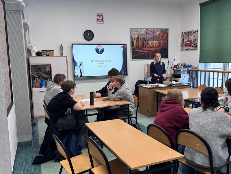 Wojewódzki projekt edukacyjny pn. „Bezpieczny nastolatek w świecie cyfrowym” jest realizowany przy wsparciu Fundacji Orlen Pomorze w roku szkolnym 2025/2026. W wybranych klasach VIII szkół podstawowych policjanci prowadzą spotkania edukacyjno – profilaktyczne, podczas których informują uczniów o konkursie na spot edukacyjny pod w/w hasłem.