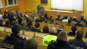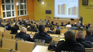 W miniony piątek w sali audio-wizualnej Zespołu Szkół Mechaniczno-Informatycznych w Lęborku odbyła się odprawa roczna podsumowująca działalność garnizonu lęborskiej policji. W odprawie uczestniczył I Z-ca Komendanta Wojewódzkiego Policji w Gdańsku insp. Marian Szlinger oraz zaproszony przez Komendanta Powiatowego, Starosta Lęborski – Wiktor Tyburski. W spotkaniu wzięło udział prawie 90 policjantów oraz pracownicy cywilni komendy. Komendant Powiatowy Policji insp. Jacek Partyka przedstawił największe osiągnięcia jednostki na tle ubiegłych 5 lat oraz porównał je z wynikami całego województwa. W wielu dziedzinach widoczna jest poprawa jednak zawsze pozostają płaszczyzny w jakich należałoby dołożyć starań celem polepszenia. Komendant podsumował róznież zmiany strukturalne jednostki i omówił zamiany na najważniejszych stanowiskach w komendzie jakie spowodowane były m.in. odejściem ponad 10 f-szy i planowanymi na obecny rok kolejnymi odejściami na świadczenia emerytalne.